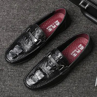Men's Genuine Leather Loafers with Crocodile Pattern