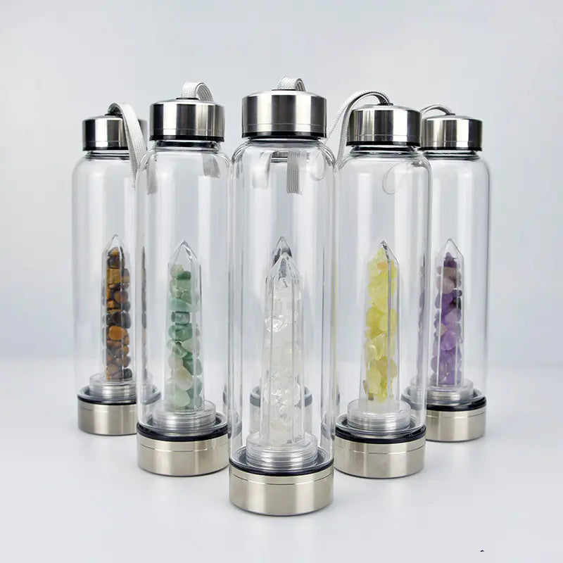 Elevate your hydration experience with our stunning Natural Crystal Stone Crushed Stone Energy Water Cup. Crafted from high-quality high borosilicate glass, this portable cup not only keeps your beverages at the perfect temperature but also adds a touch of elegance to your daily routine.
