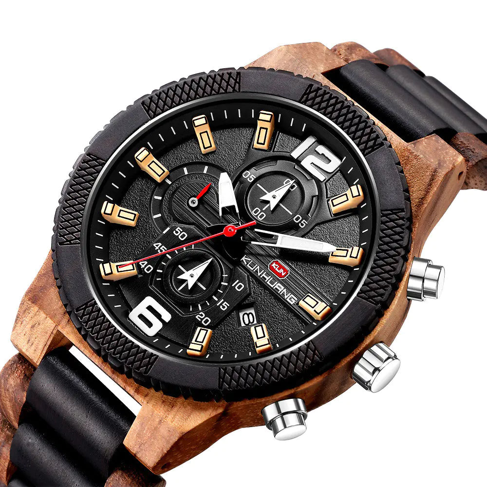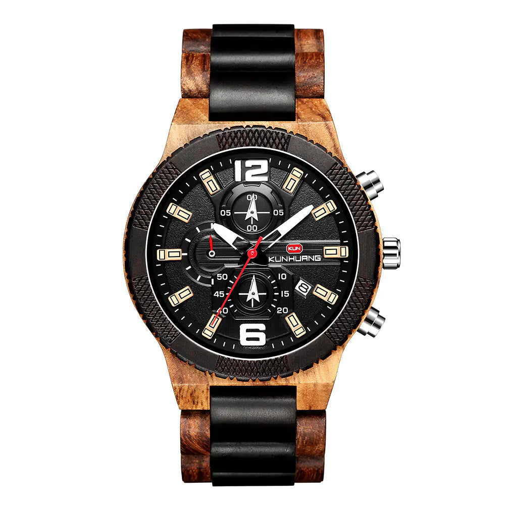 Discover the elegance and sophistication of our Men's wooden watch, a perfect blend of style and functionality. This exquisite timepiece features a multi-function quartz movement, ensuring precision and reliability with every tick. The watch has a substantial dial diameter of 50mm and a thickness of 13mm, making a bold statement on your wrist.