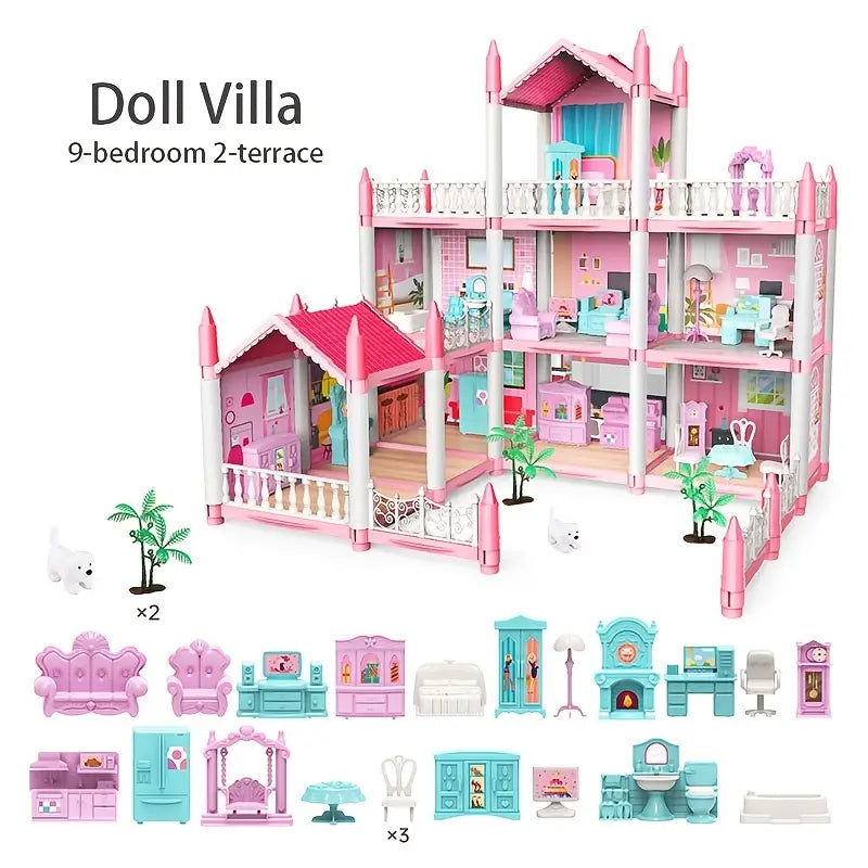Step into a world of imagination with our stunning Girl Dollhouse Gift Dream House Playset. This enchanting dollhouse is designed to captivate young minds, providing endless hours of creative play for girls. Featuring a magnificent structure with 2 balconies and a total of 9 rooms, this dollhouse is not just a toy; it's a dream home for your little princess.