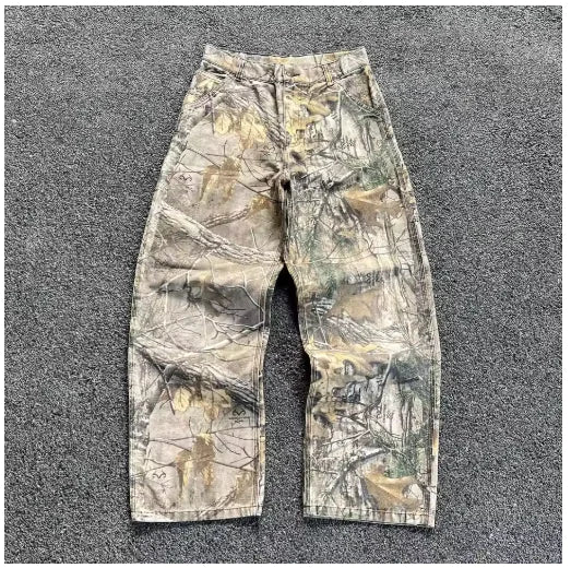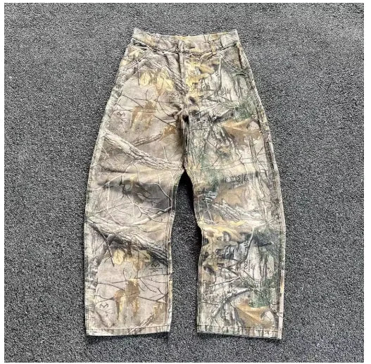 Step into bold street style with these 2000s-inspired leaf print jeans, designed for those who love oversized, hip-hop fashion. Featuring a camouflage branch pattern, these straight-leg jeans offer a relaxed fit, making them perfect for everyday wear. Crafted from durable polyester-blend denim, they provide micro elasticity for comfort while maintaining a structured look.