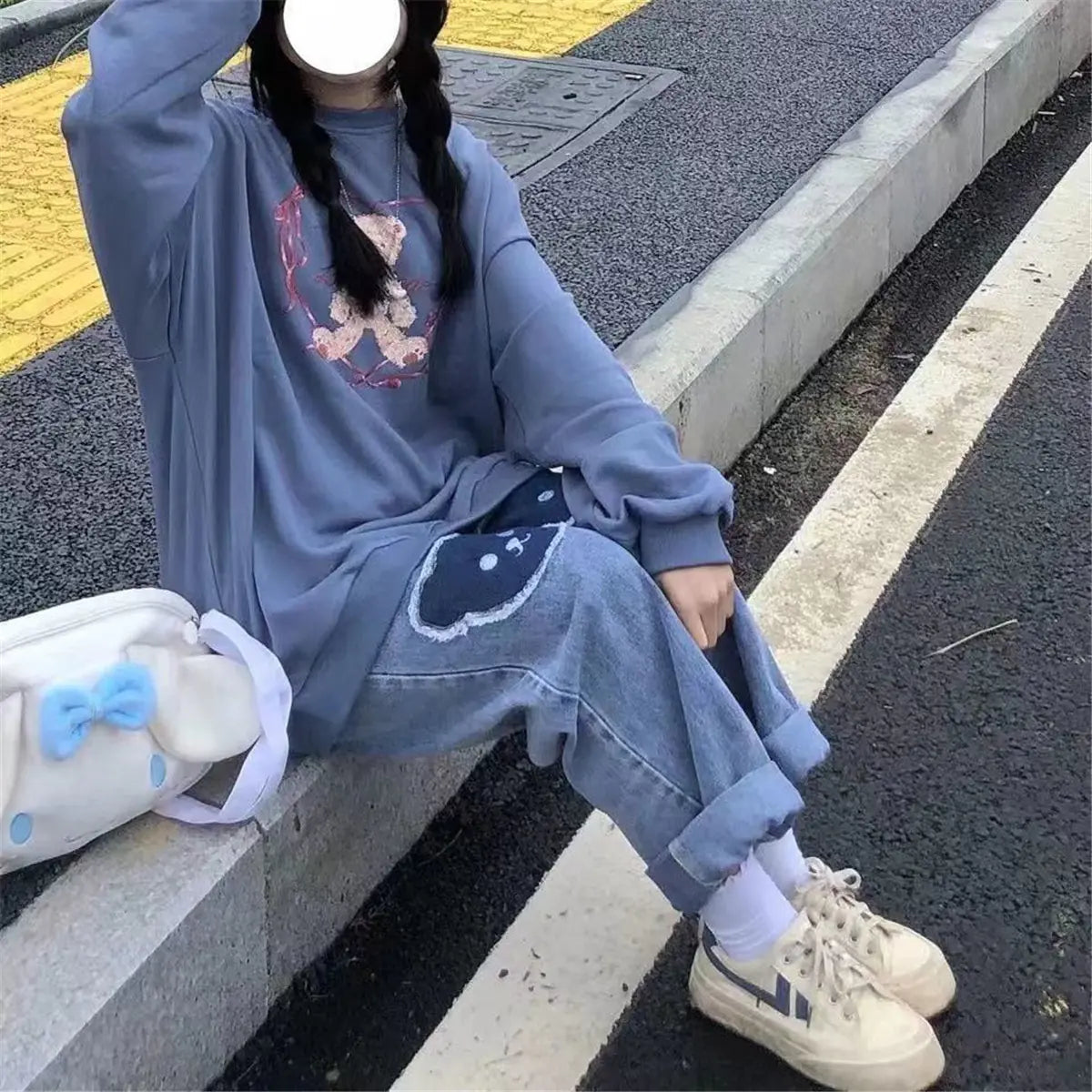 2023 Cute Hip Hop Bear High Waist Denim Baggy Pants