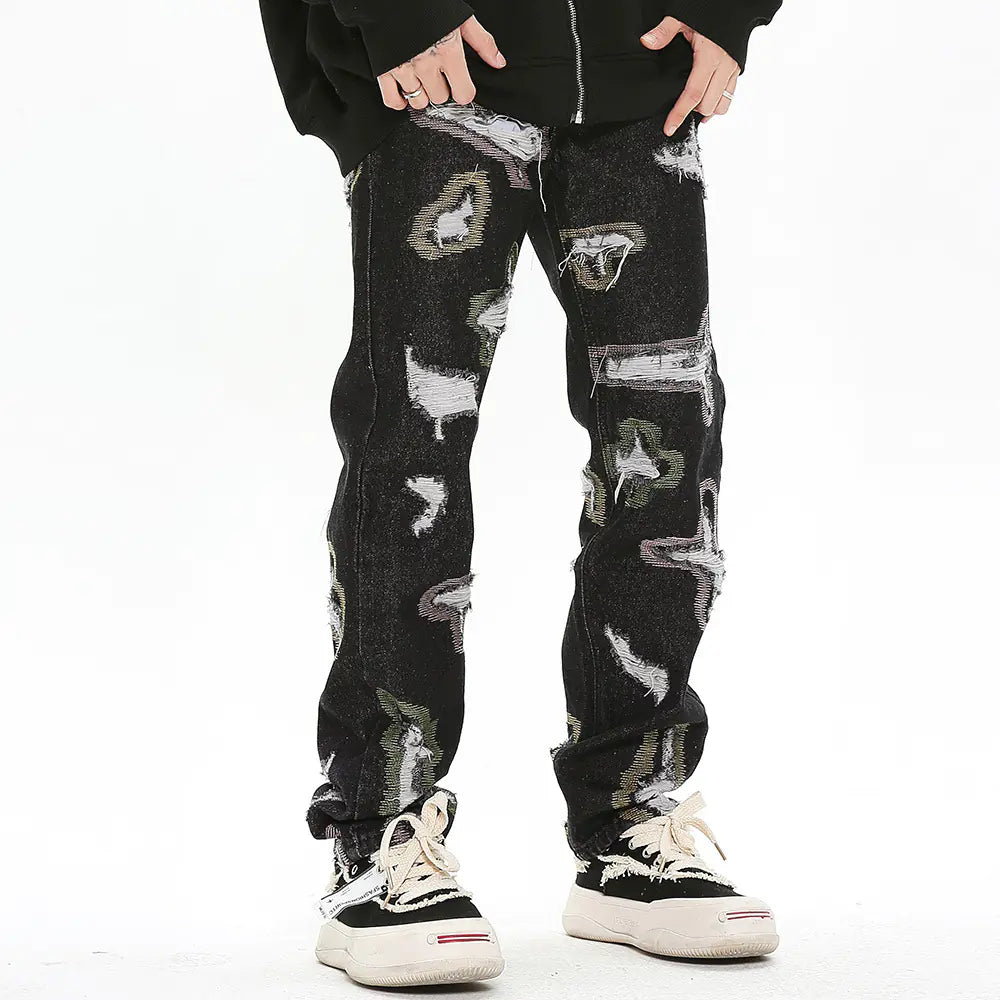 Discover the perfect blend of style and comfort with our Color Contrast Ripped Embroidered Jeans. Designed for the modern individual, these jeans embrace the essence of American street style while offering a unique twist with their patch decorations and intricate embroidery.