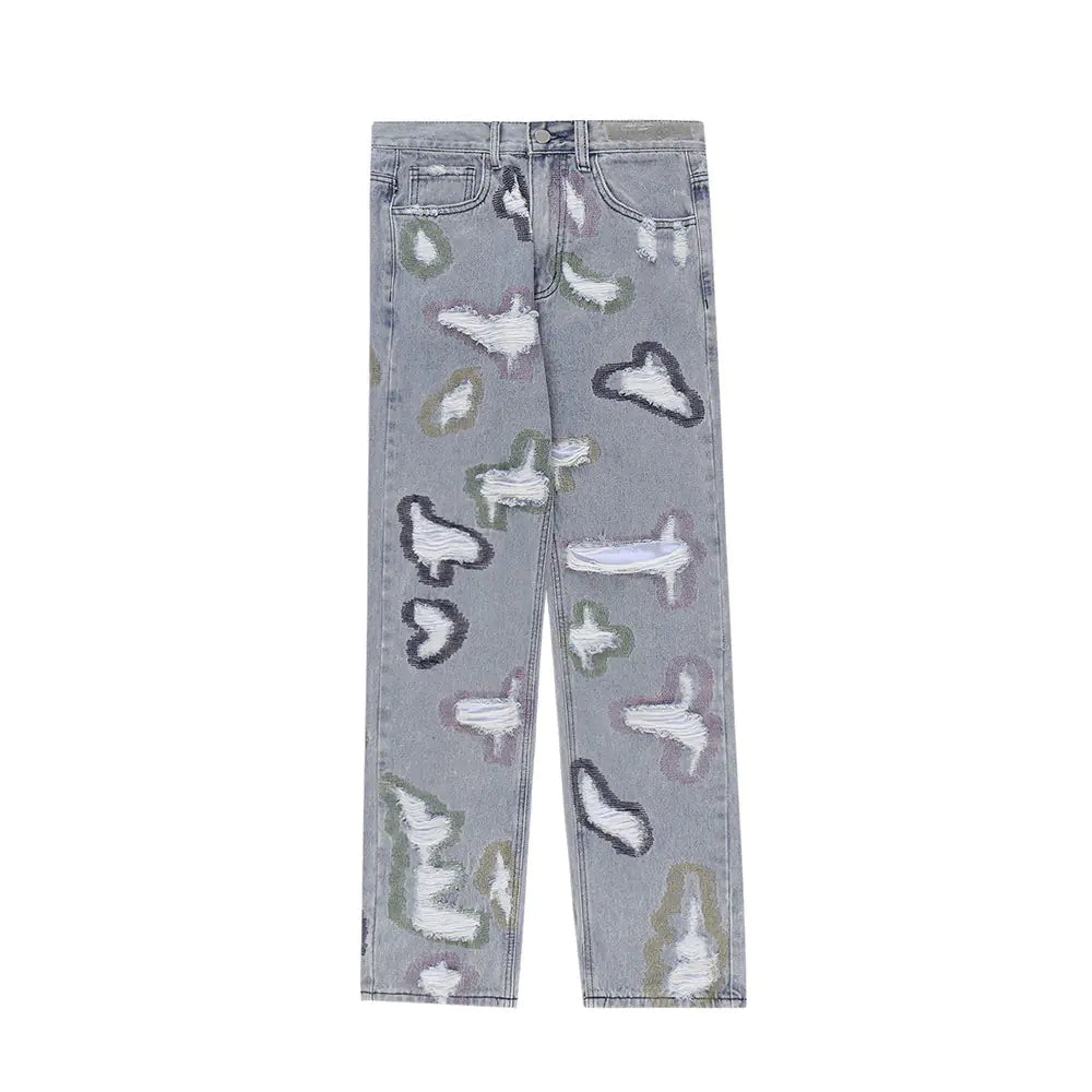 These jeans are the perfect blend of street style and American flair, designed to make a statement wherever you go. Crafted from high-quality denim, these jeans feature unique patch decorations and intricate embroidery that add a touch of personality to your outfit.