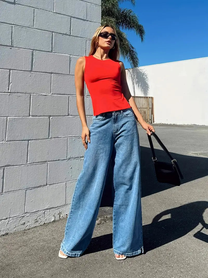 Elevate your casual wardrobe with our stylish Blue High Waist Straight Jeans. Designed for comfort and versatility, these jeans feature a loose fit with wide legs, ensuring you move freely while looking effortlessly chic. The high waist design flatters your figure, making them perfect for pairing with your favorite tops.