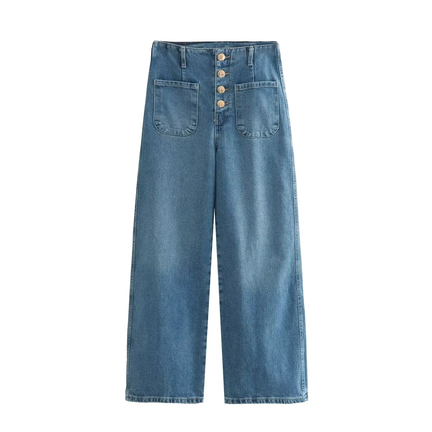 European High-Waisted Baggy Wide-Leg Capri Jeans
