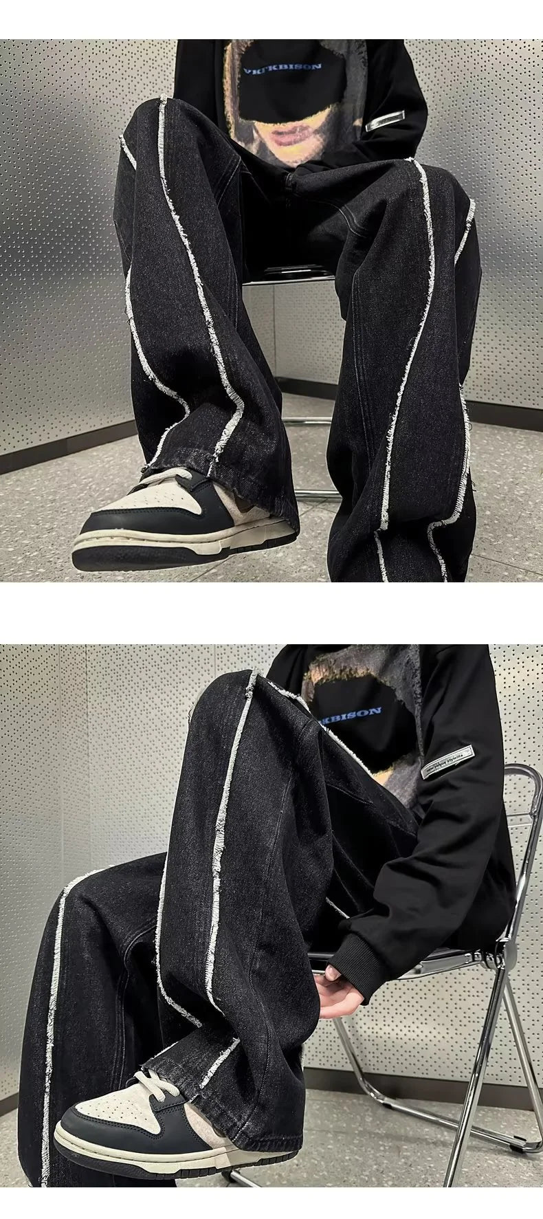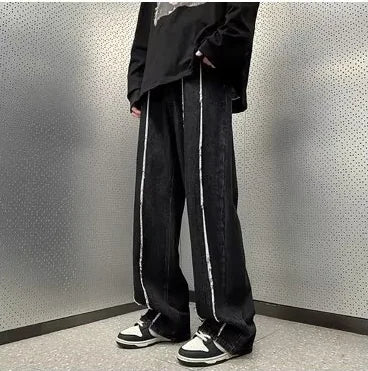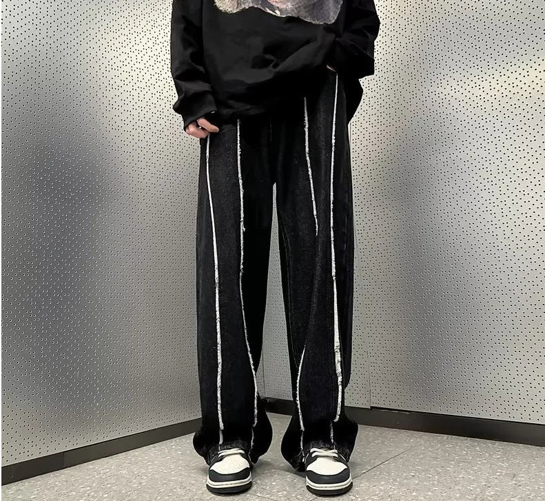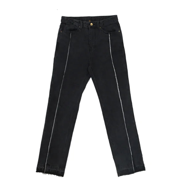 Step into the world of street fashion with our stunning pair of distressed denim flared pants. Crafted from high-quality denim, these pants feature a unique washed-out finish that gives them a vintage appeal. The straight tube design provides a flattering fit while the dramatic side slits add a touch of modern flair.