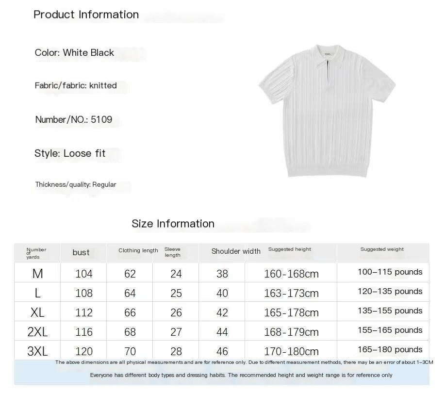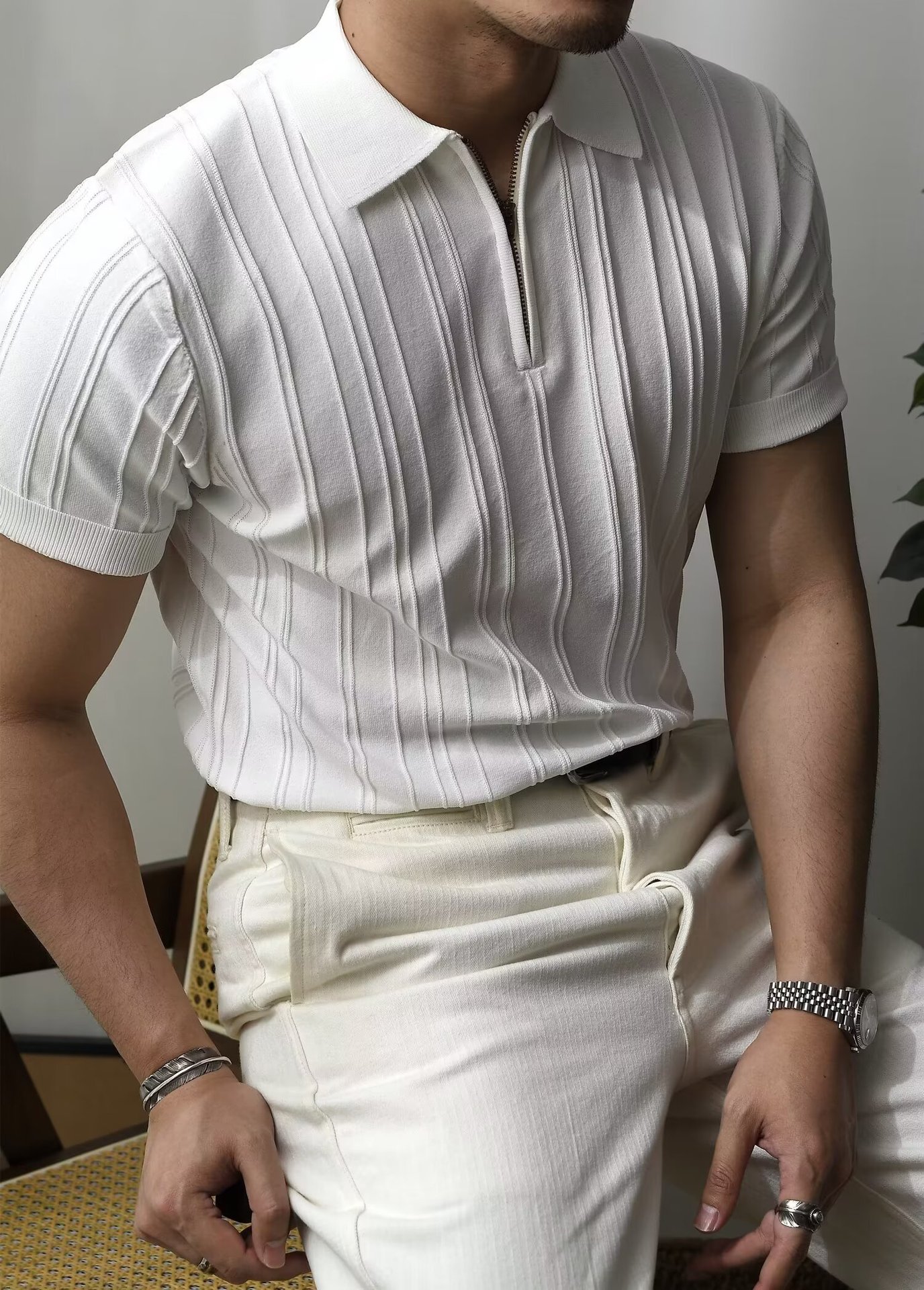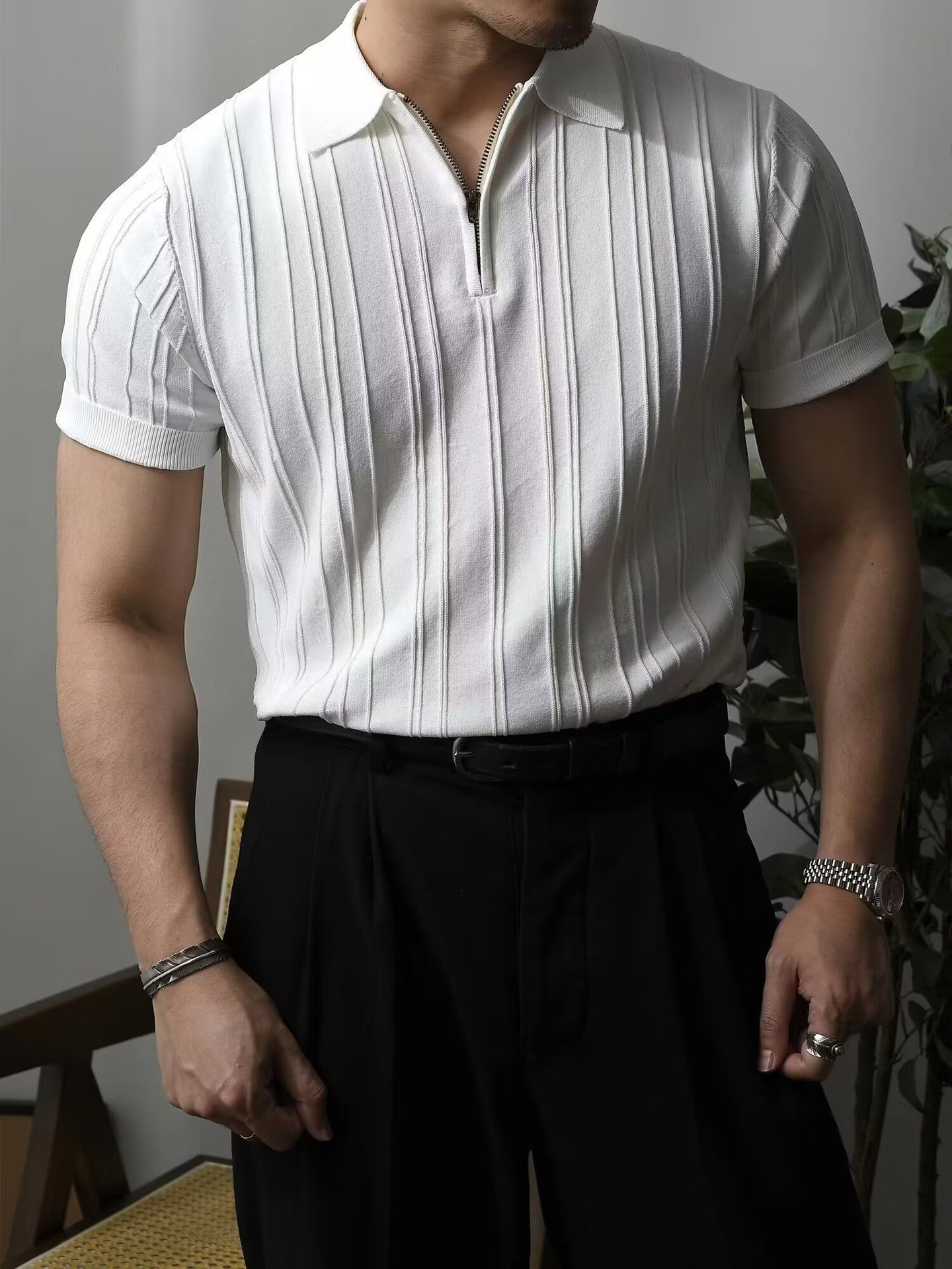The Luc Polo L - Black Summer Knit Short Sleeve T-Shirt