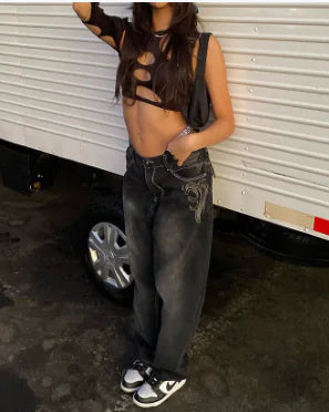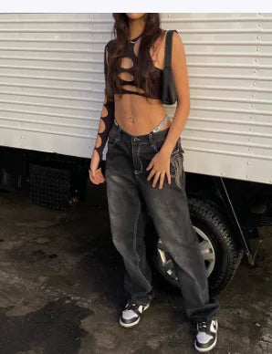 Upgrade your wardrobe with our Washed Straight-leg Pants, the ultimate choice for women's casual jeans. Designed to offer both comfort and style, these pants are crafted from high-quality denim fabric that ensures durability and a perfect fit. The medium thickness makes them ideal for year-round wear while the classic black color keeps your look effortlessly chic.