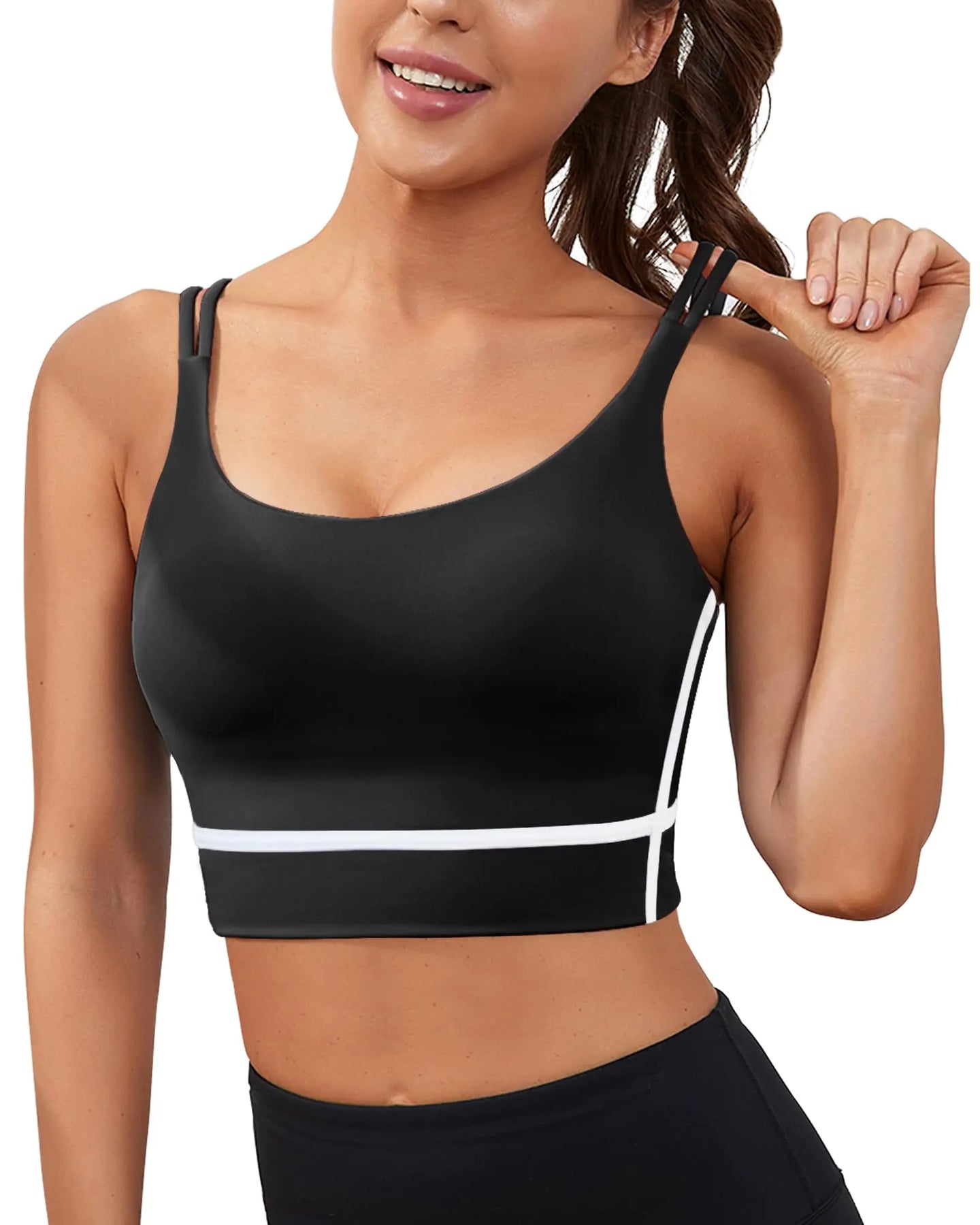 [Workout Tops for Women Built in Bra--Women strappy sports bra has professional yoga bra fabric to achieve moisture-wicking fabric and an all-way stretch construction. Padded sports bras for women with built-in cups let you to customize shaping make your fiugre more cute and feminine. Workout tank tops provide newest choice for gym camisole lovers. Strappy Sports Bra for Women---Hug your workout fashion with our 2024 crop tops sports bra! Cross back sports bras for women add front classic wide straps and back spaghetti strap to protect your shoulder and provide high support. Women backless sports bra as a training bra Yoga tops has excellent breathability to keep your back cool in the gym workout. Long Line Sports Bra Women---The longline sports bra yoga camisole provides full coverage and prevents any unwanted movement. Women medium impact fitness crop tops supports you while letting you comfortable through intense poses and deep stretches. The running tanks top for women combine the function and fashion provide more stability and security for the large bust sports bra. Yoga Tank Tops for Women---With the Scoop neck design the cropped workout tops for women not only exhibit your beautiful neckline but also match the any bust to feel fitness. Color block sports bra has special contrasting color can be the running sports bras for women and casual outfits. Black longline sports bra has many color to choose you can find your lover. "Gym Bras for Women Workout---Yoga bralettes for women pairs easily with workout outfits. Criss cross bras for women trend of wearing womens sports bras like push up sports bras for women can offer comfort and style for womens. Black backless sports bra is perfect for supportive sports bras for women yoga bra high compression sports bra gym people sports bra and athletic tops for women as a womens gym clothes."]